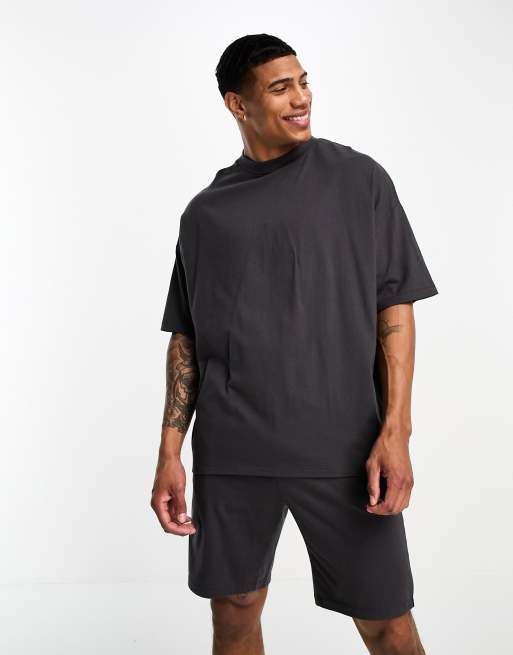 ASOS Design oversized pyjama lounge set with t-shirt and shorts in charcoal