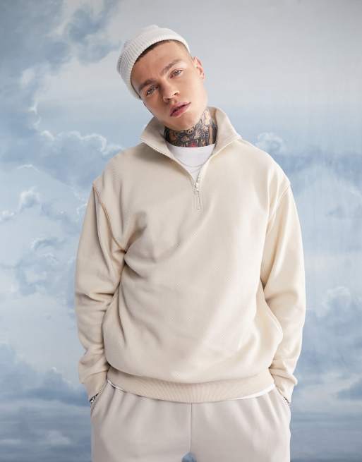 ASOS DESIGN oversized quarter zip sweatshirt in beige texture