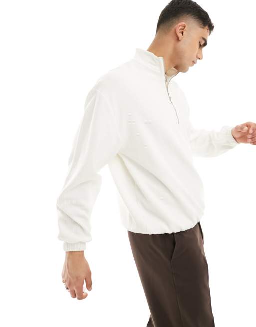 ASOS DESIGN oversized quarter zip sweatshirt in ribbed fabric in soft white