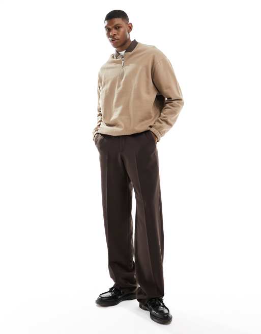 ASOS DESIGN oversized quarter zip sweatshirt with contrast collar in brown