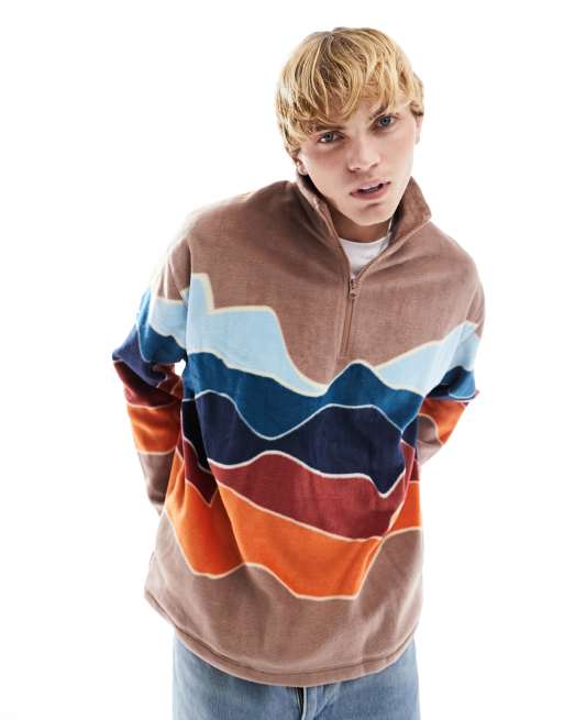 ASOS DESIGN oversized quarter zip sweatshirt with moutain scene all over print in polar fleece