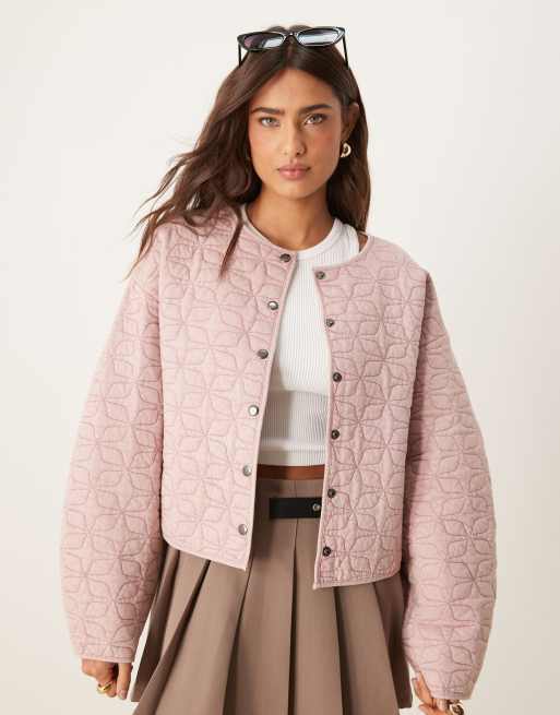ASOS DESIGN oversized quilted jacket with cocoon sleeve in washed pink