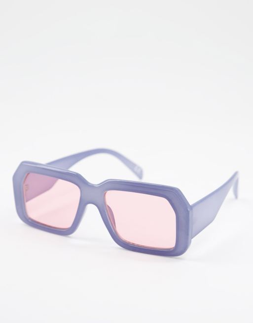 ASOS DESIGN oversized retro sunglasses in blue with pink lens - MBLUE