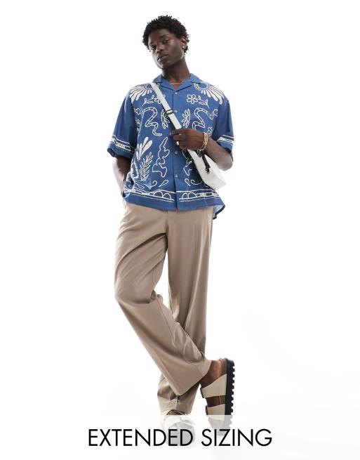 ASOS DESIGN oversized revere shirt with border and abstract print in blue