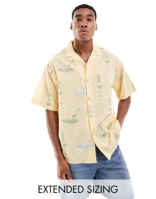 ASOS DESIGN oversized revere shirt with wine and pasta print