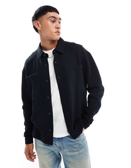 ASOS DESIGN oversized ribbed button through jersey jacket in black