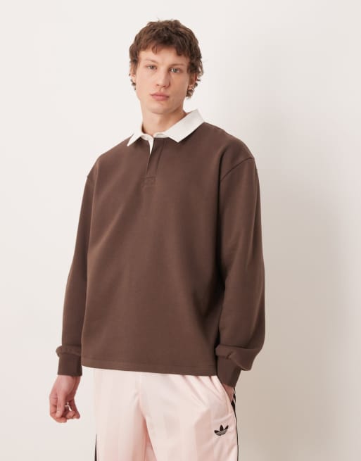 ASOS DESIGN oversized rugby polo with contrast collar in brown
