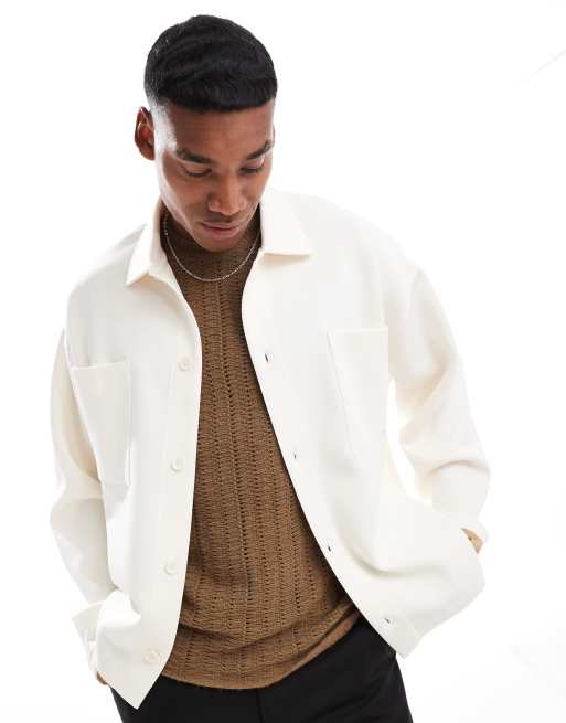 ASOS DESIGN oversized shacket in scuba-style fabric in ecru