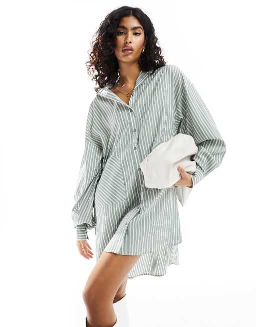 ASOS DESIGN oversized shirt dress with dropped pockets in green stripe