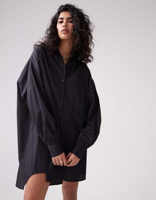 ASOS DESIGN oversized shirt dress with dropped pockets in midnight black