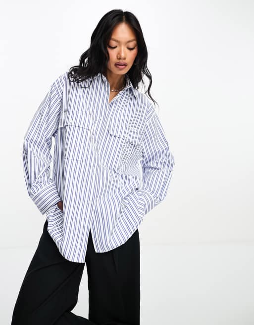 ASOS DESIGN oversized shirt with wide cuff detail in blue double stripe