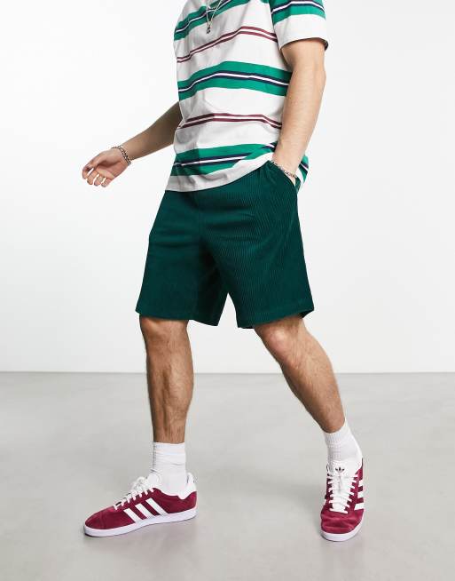 ASOS DESIGN oversized shorts in dark green ribbed velour