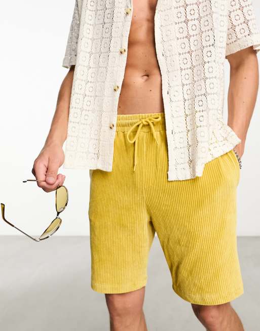 ASOS DESIGN oversized shorts in mustard ribbed velour