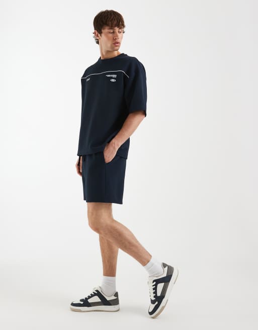 ASOS DESIGN oversized smart textured jersey short in navy blue