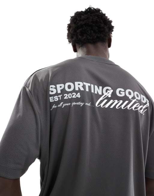 ASOS DESIGN oversized sporty mesh t-shirt with back print in charcoal