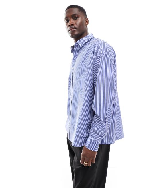 ASOS DESIGN oversized square collar shirt with pockets in blue stripe