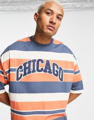 ASOS DESIGN oversized stripe t-shirt with Chicago city print
