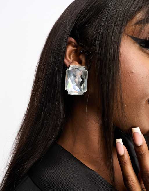 ASOS DESIGN oversized stud earrings with large crystal design in silver tone
