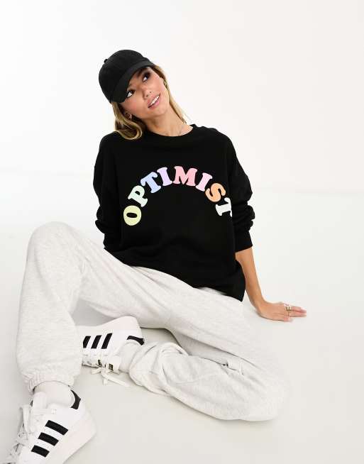 ASOS DESIGN oversized sweat with optimist puff graphic in black