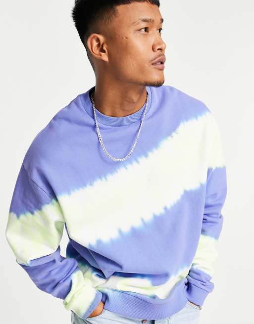 ASOS DESIGN oversized sweatshirt in blue stripe tie dye