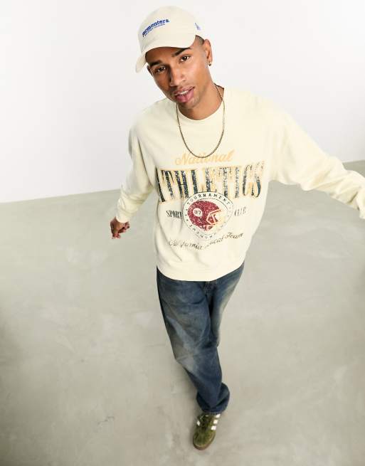 ASOS DESIGN oversized sweatshirt in washed beige with collegiate print