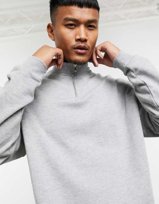 ASOS DESIGN oversized sweatshirt with quarter zip in grey marl