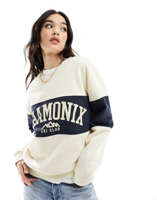 ASOS DESIGN oversized sweatshirt with ski graphic in cream