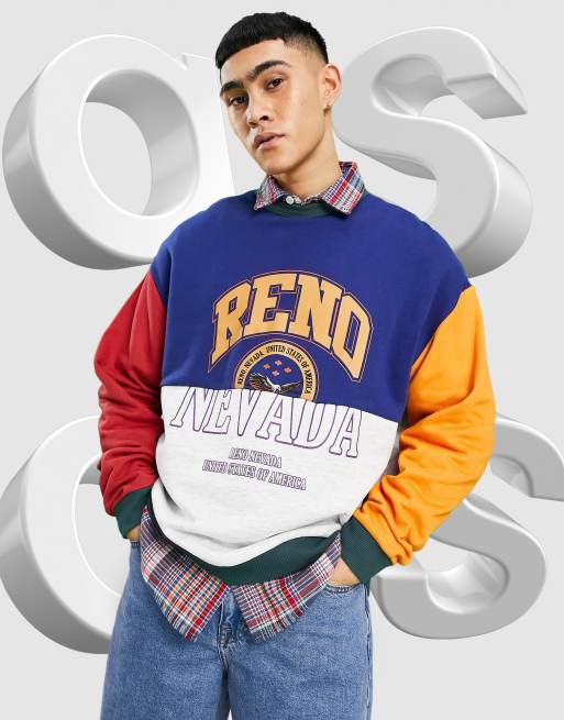 ASOS DESIGN oversized sweatshirt with spliced collegiate print & colour blocking