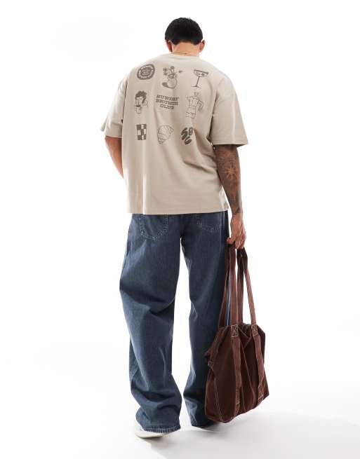 ASOS DESIGN oversized t-shirt in beige texture with brunch club back print