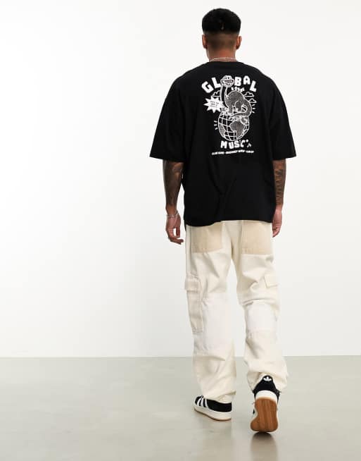 ASOS DESIGN oversized t-shirt in black with cartoon back print