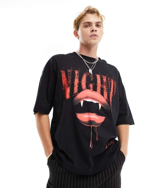ASOS DESIGN oversized t-shirt in black with front lips print