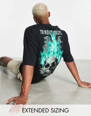 ASOS DESIGN oversized t-shirt in black with skull back & chest puff print