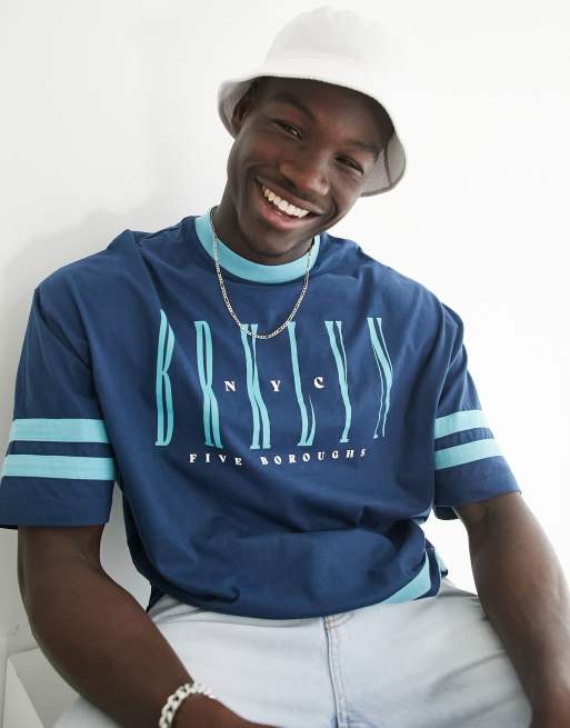 ASOS DESIGN oversized t-shirt in blue colour block with Brooklyn city print