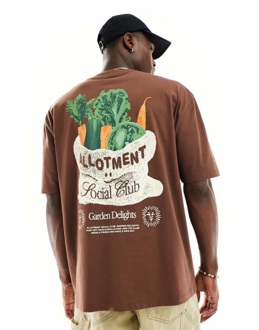 ASOS DESIGN oversized t-shirt in brown with horticultural back print