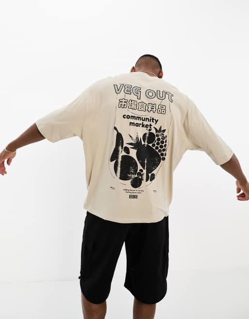 ASOS DESIGN oversized t-shirt in brown with veg out back print
