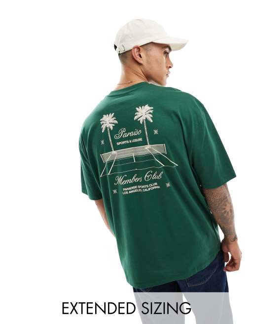 ASOS DESIGN oversized t-shirt in dark green with tennis back print & chest print
