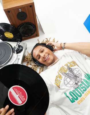ASOS DESIGN oversized t-shirt in ecru with collegiate Louisiana print
