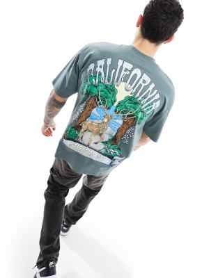 ASOS DESIGN oversized t-shirt in green with back outdoors cartoon print
