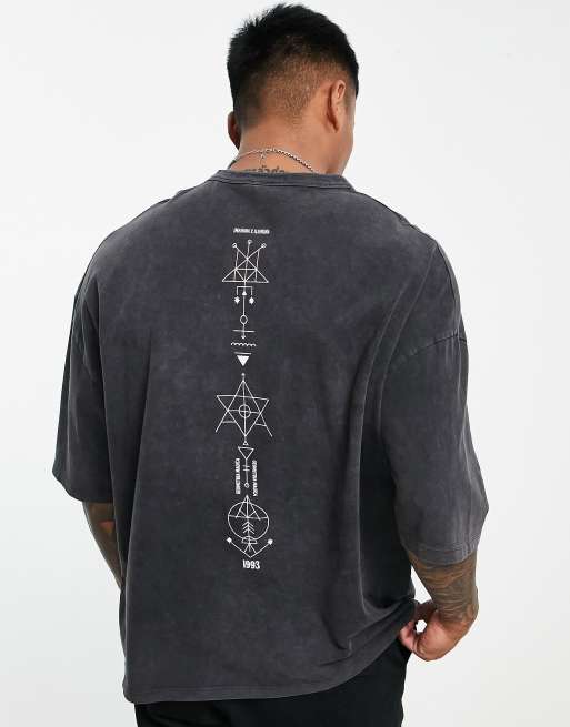 ASOS DESIGN oversized t-shirt in heavyweight washed black with symbol spine print