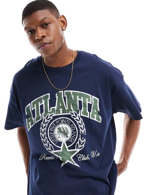 ASOS DESIGN oversized t-shirt in navy with Atlanta front print