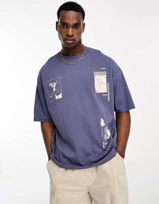 ASOS DESIGN oversized t-shirt in navy with multi placement print