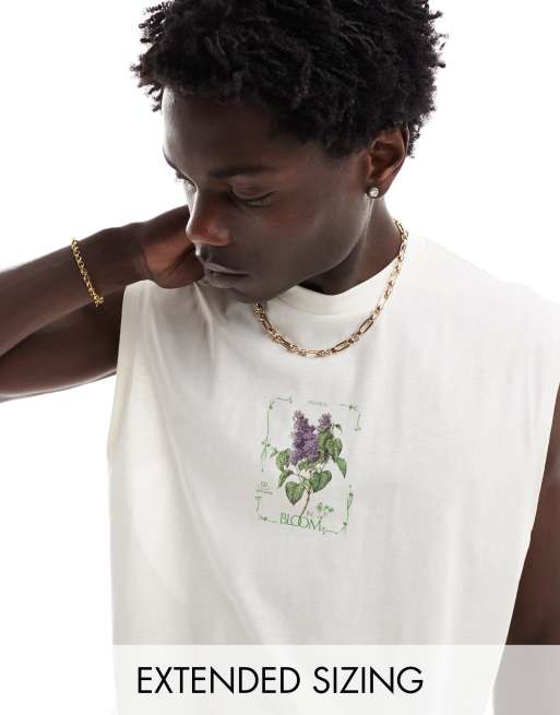 ASOS DESIGN oversized t-shirt in off white with floral chest print