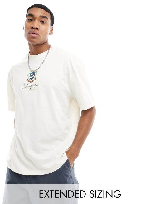 ASOS DESIGN oversized t-shirt in off white with varsity chest print