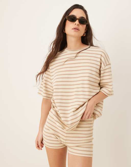 ASOS DESIGN oversized t-shirt in textured neutral stripe
