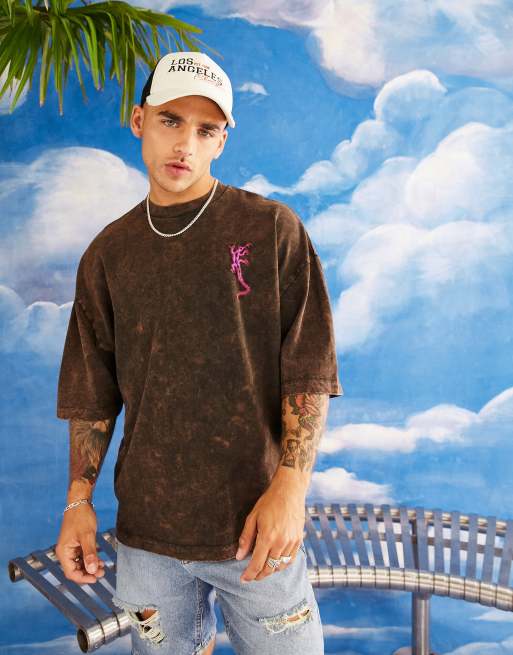 ASOS DESIGN oversized t-shirt in washed brown with lizard chest embroidery