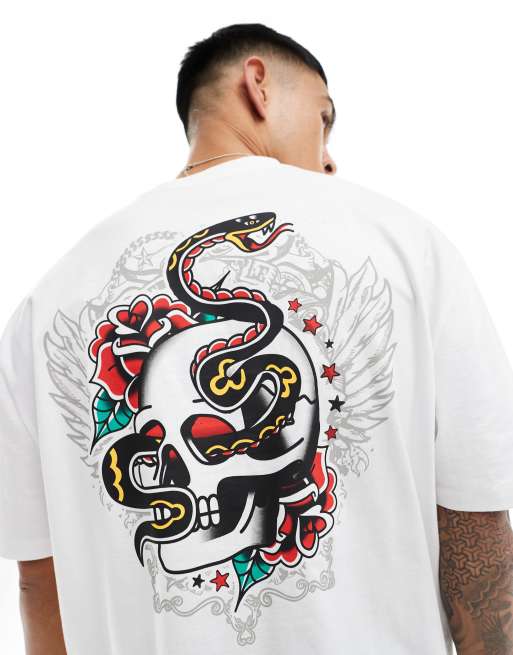 ASOS DESIGN oversized t-shirt in white with skull & snake back print