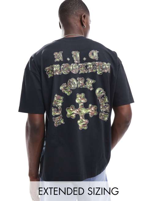 ASOS DESIGN oversized t-shirt with camouflaged back print in black