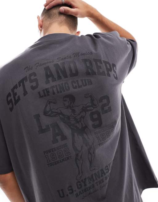 ASOS DESIGN oversized t-shirt with campus gym back print in charcoal