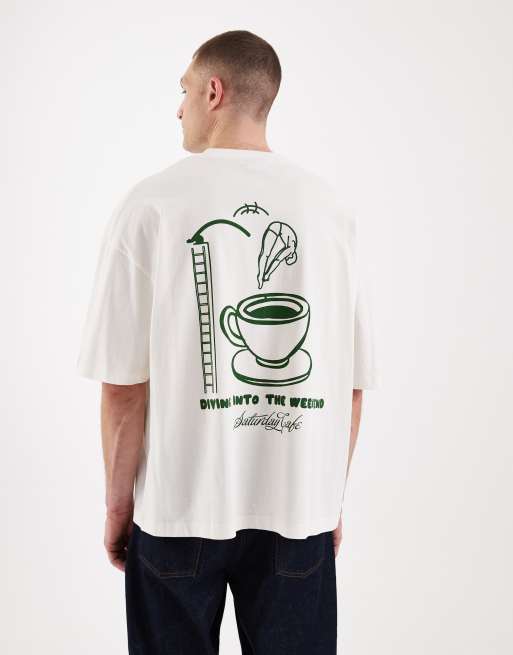 ASOS DESIGN oversized t-shirt with coffee graphic in off white