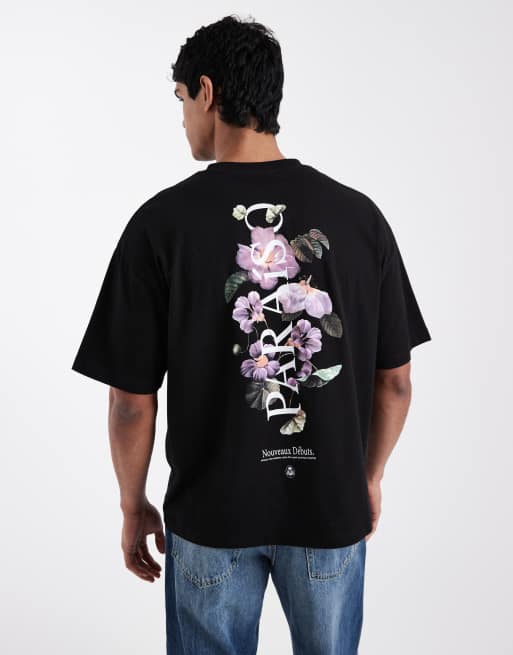 ASOS DESIGN oversized t-shirt with floral spine graphic with embroidery in black